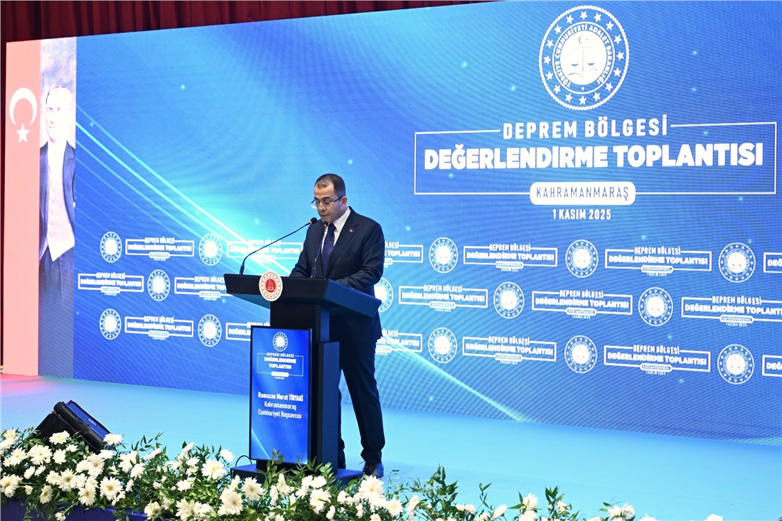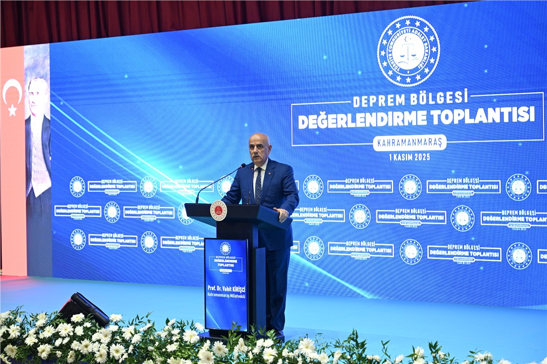Adalet Bakanımız Sayın Yılmaz TUNÇ'un teşrifleriyle, 6 Şubat 2023 tarihinde meydana gelen ve 11 ilimizi etkileyen depremler sonrasında yaşanan sorunların tespiti ve çözüm önerilerinin tartışıldığı Deprem Bölgesi Değerlendirme Toplantısı, 1 Kasım 2025 tarihinde Kahramanmaraş Sütçü İmam Üniversitesi Yunus Emre Kongre ve Kültür Merkezi Sezai Karakoç Konferans Salonunda gerçekleştirilmiştir.